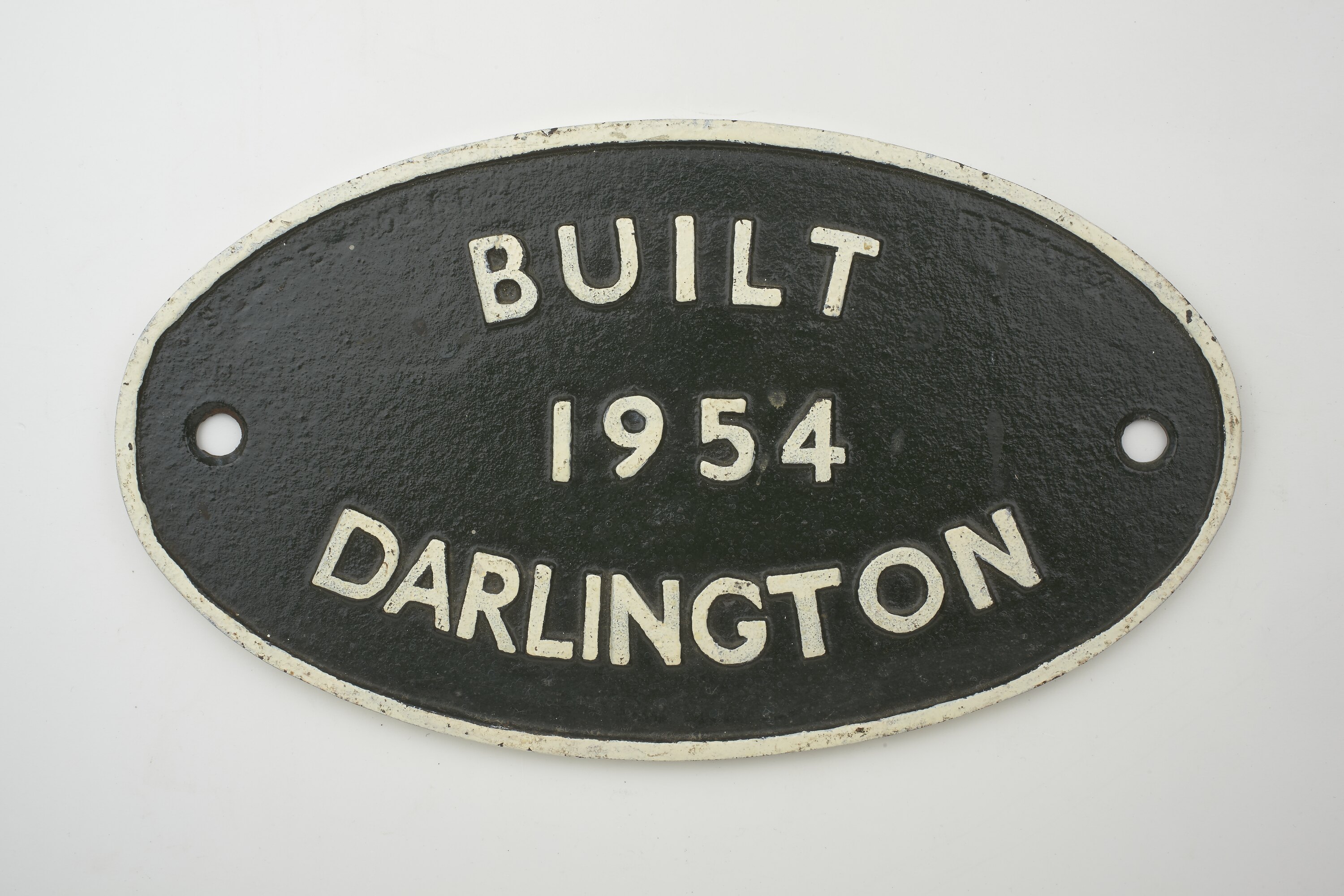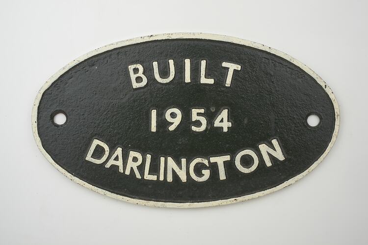 Cast iron oval locomotive builders plate, manufactured by British Railways, Darlington Works, England in 1954.