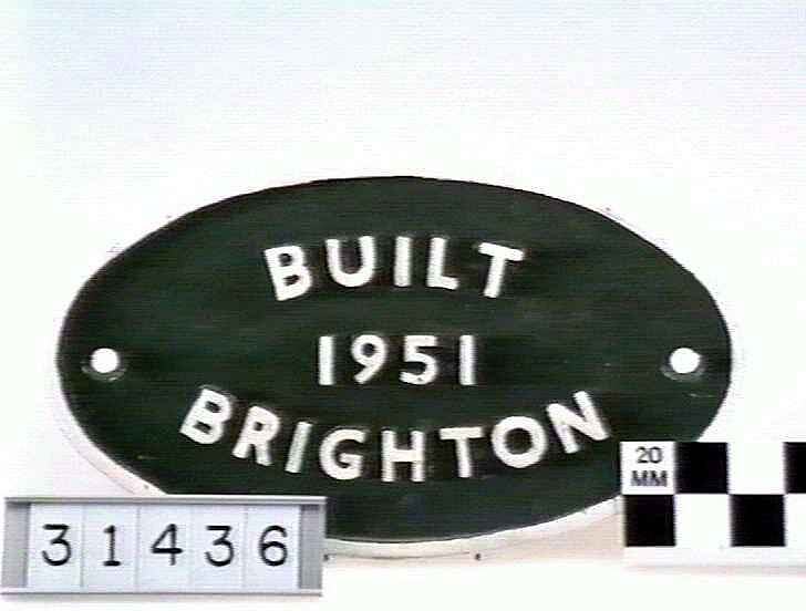 Cast iron oval locomotive builders plate, manufactured by British Railways, Brighton Works, England in 1951.