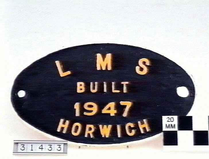 Manufacturer's identification plate originally fitted to a London, Midland and Scottish Railway Class 5 Locomotive, 4-6-0.