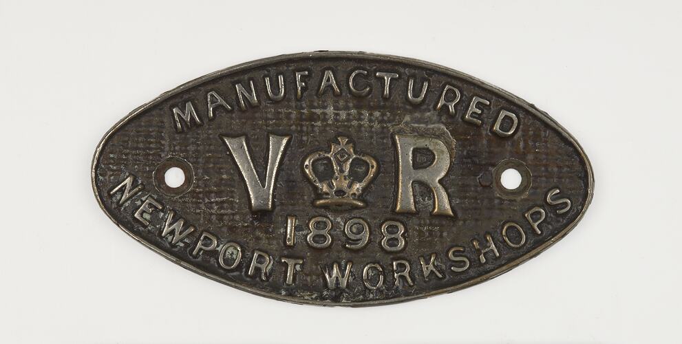 Maker's plate for railway rollingstock, Newport Workshops, Victorian Railways, 1898.