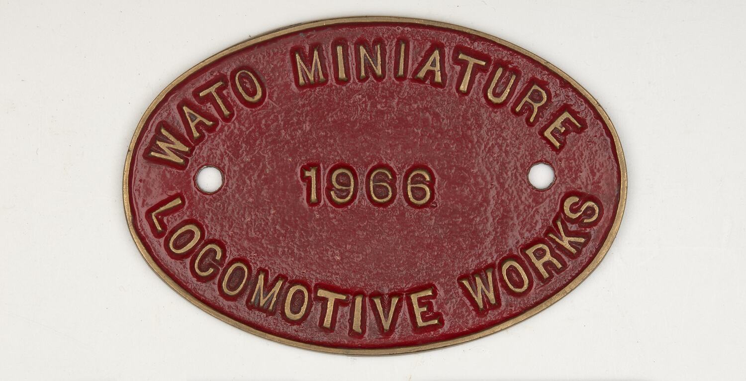 Brass oval locomotive builders plate, manufactured by Keith Watson, a Western Australlian model locomotive maker., 1966.