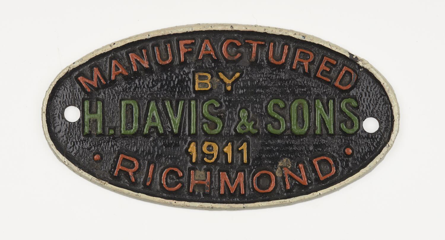 Manufactured by H. Davis & Sons, Richmond, 1911.