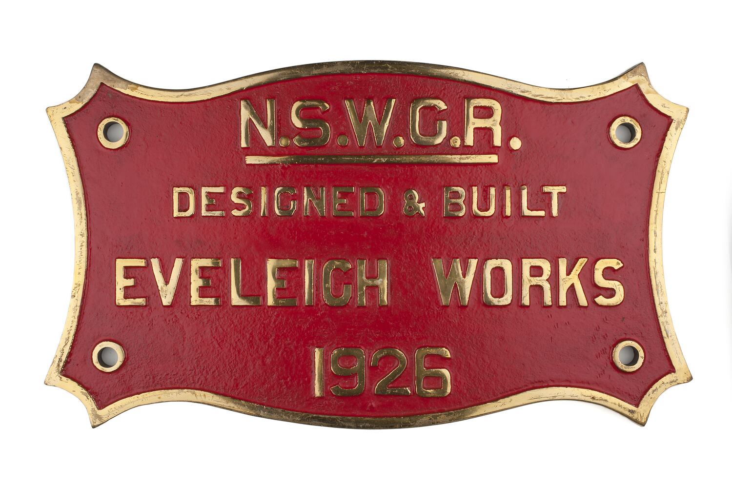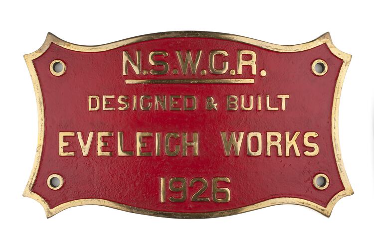 Brass oblong badge locomotive builders plate, manufactured by New South Wales Railways, Eveleigh Works, Sydney, 1926.