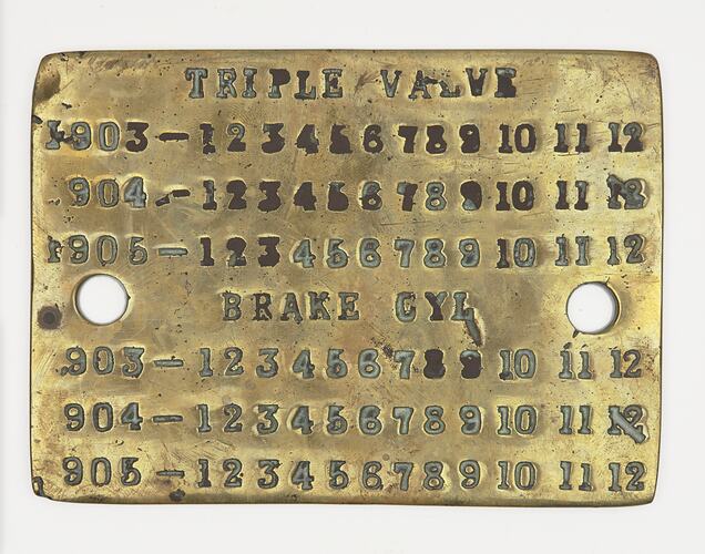 Brass locomotive inspection plate for inspection of triple valve and brake cylinder, 1903-1905