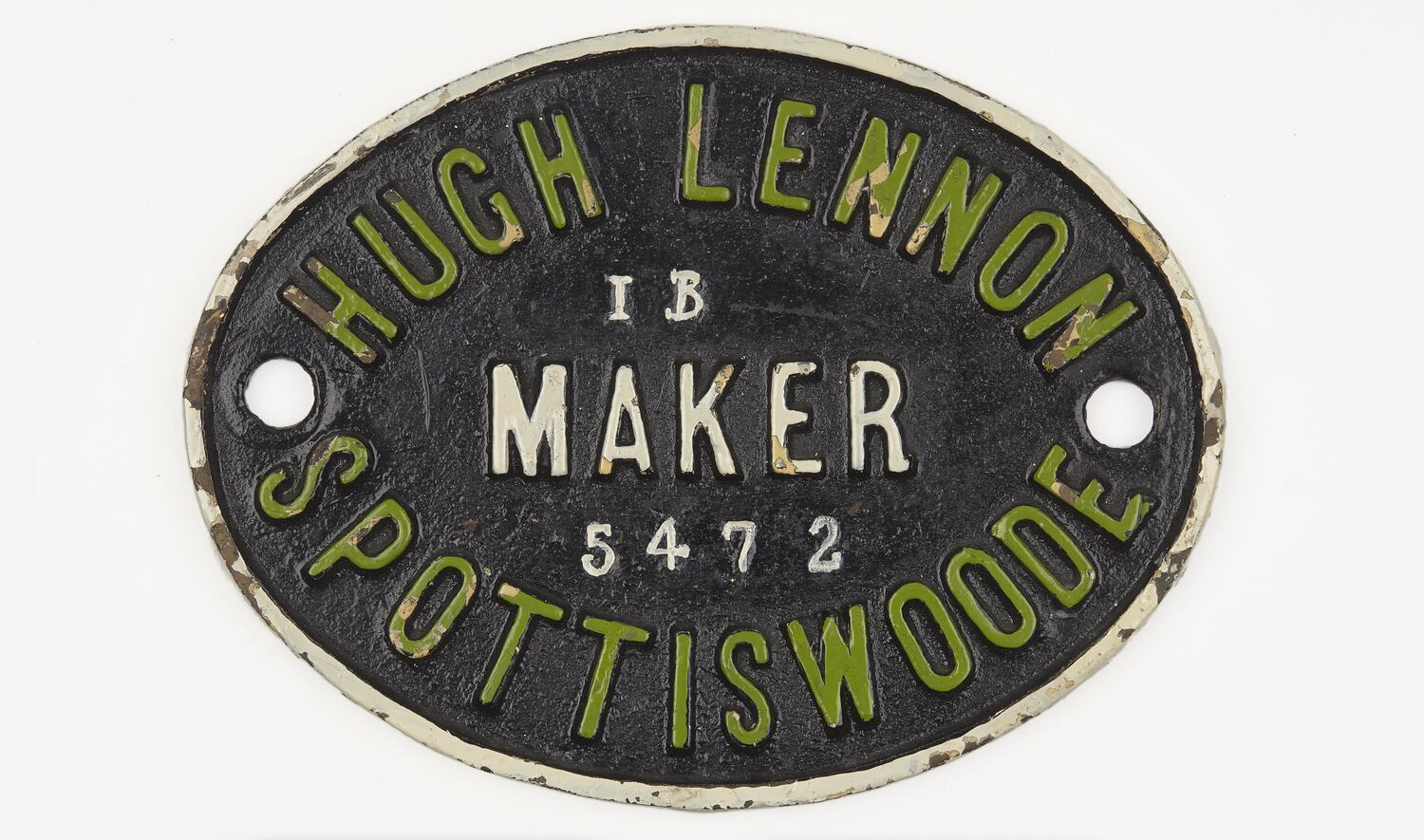 Builders plate for railway rollingstock, made by Hugh Lennon, Spottiswoode (Spotswood), Victoria, circa 1890s.