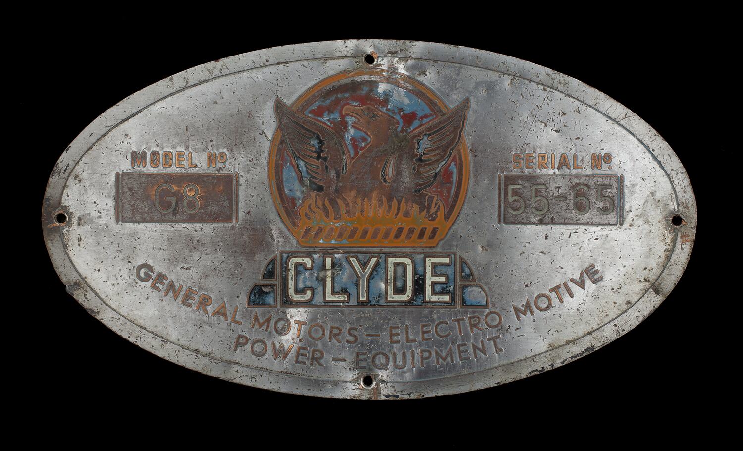 Clyde. General Motors - Electro Motive. Power - Equipment. Model No G8. Serial No. 55-65.