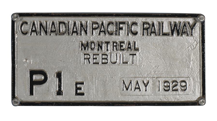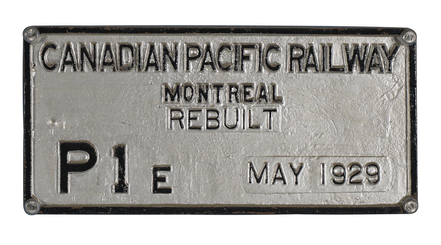 Manufacturer's identification plate originally fitted to a Canadian Pacific Railway P1E Series Locomotive 2-8-2, No. 5182. The P1E was a rebuild of the P1B built by Montreal Locomotive Works for Canadian Pacific Railway in 1913.