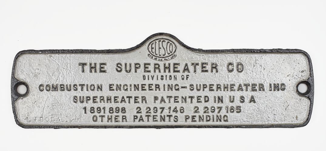 ELESCO. The Superheater Co. A Division of COmbustion Engineering-Superheater Inc. Superheater Patented in USA. 1891898 2297146 2297165. Other Patents Pending.