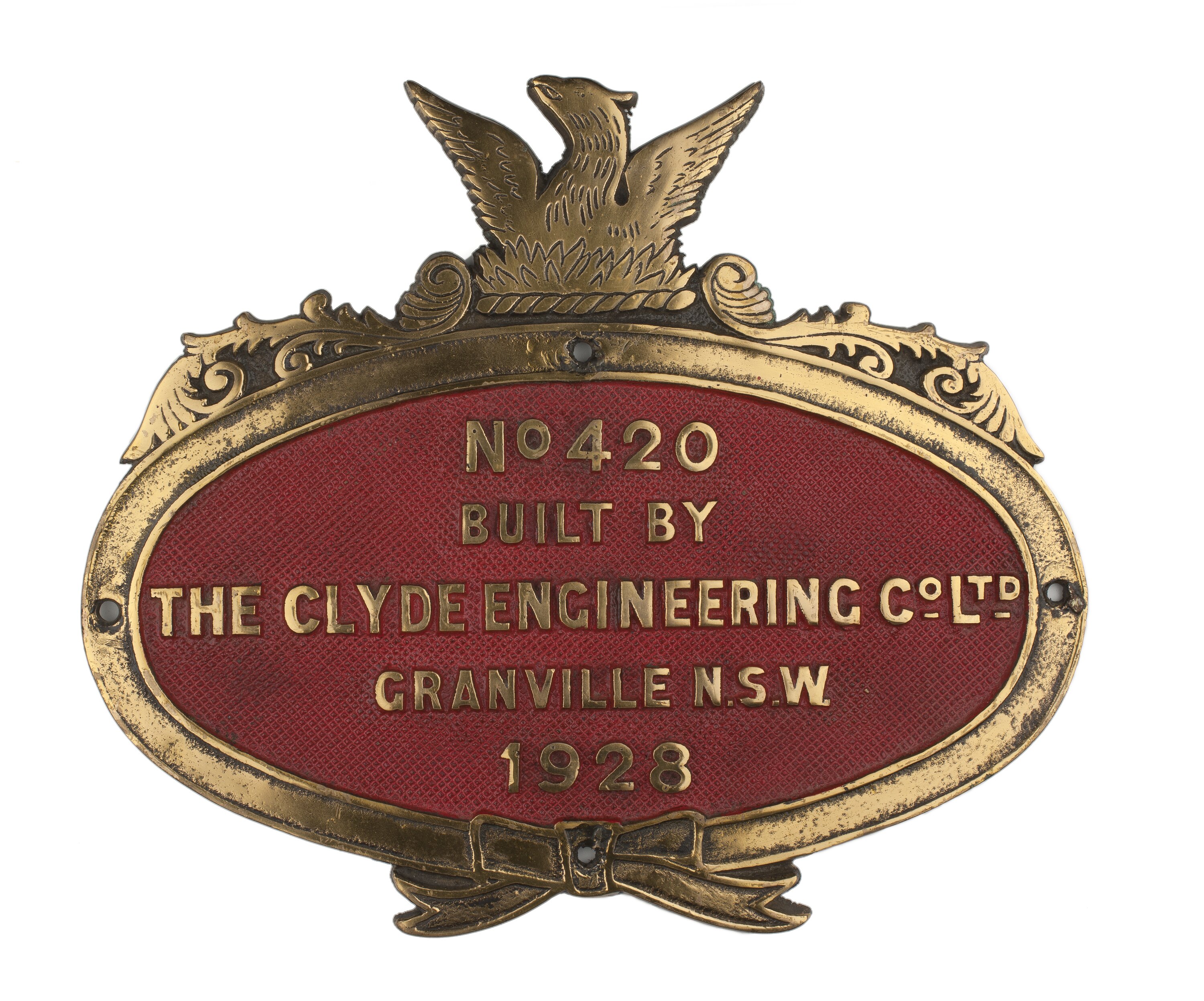 No 420 / BUILT BY / THE CLYDE ENGINEERING CO. LTD. / GRANVILLE N.S.W. / 1928.