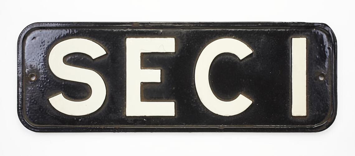 Locomotive number plate, SEC 1, from a State Electricity Commission of Victoria locomotive.