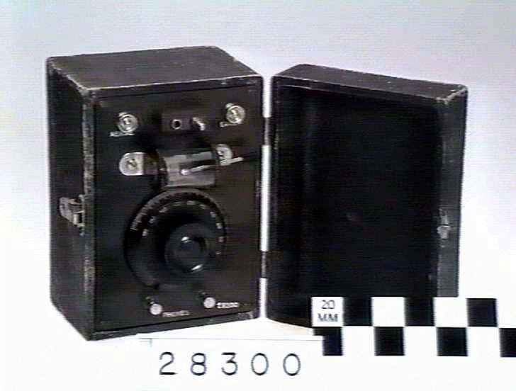 Commercially-made set with plug-in coil and Galena detector in black English Morocco case.