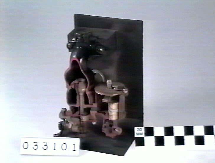 Stewart J.2B5 carburettor made by the Detroit Lubrication Co., Detroit, USA, circa 1914. Patent Nos 5:28:11 & 4:22:13. It was fitted to Dodge & Page motor cars. This example was sectioned for the Museum at the University of Melbourne under supervision of Professor W. Kernot of the School of Engineering. The unit was acquired from the Canada Cycle Co. of Melbourne in 1923.