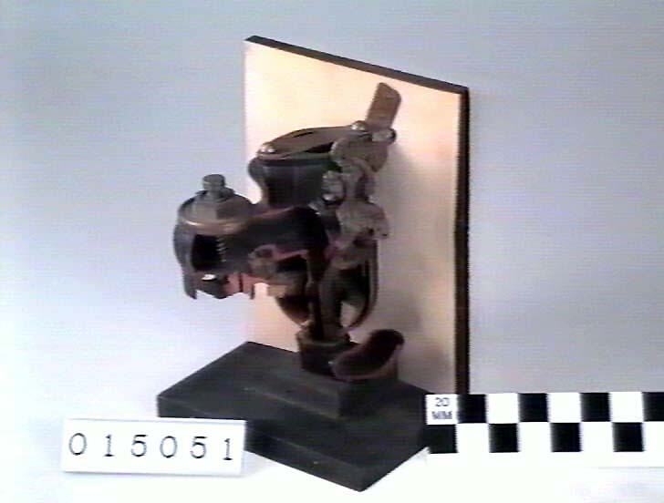 Schleber carburettor, made circa 1905. US patent 14:10:1902. Unit sectioned for the Museum at University of Melbourne School of Engineering under Professor W. Kernot
