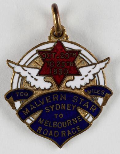 Cycling prize awarded to Hubert Opperman, for the Malvern Star Sydney to Melbourne Road Race, 1930. The event covered 700 miles (1126.5 km) and was held over 5 stages between the 20th and 25th of October.