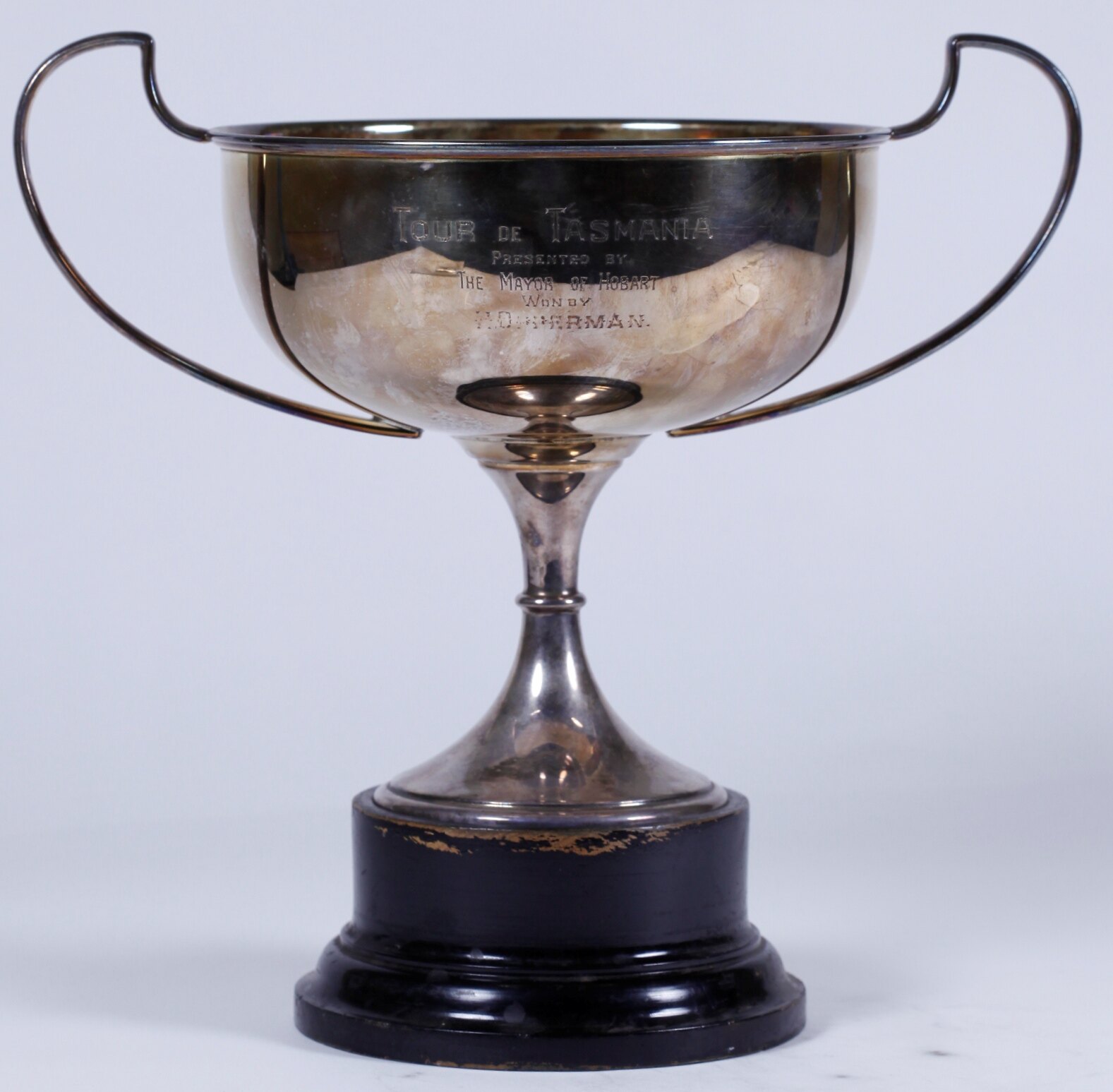 Cycling award for Hubert Opperman's -Tour de Tasmania. This was a three-day race over the 21st, 22nd and 24th of November,1930. Areas included in the circuit were Burnie, Launceston and Hobart.
