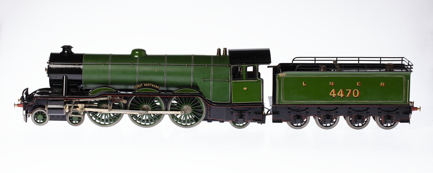 The model is based on an original Pacific class steam locomotive and tender, with 4-6-2 wheel arrangement, known as 'Great Northern' (Engine No.4470), which hauled mainline express passenger trains operated by the London & Great Northern Railway (LNER), in Great Britain (England and Scotland). It was designed by Nigel Gresley (1876-1941), the LNER's chief engineer and one of Britain most famous locomotive designers. The locomotive had 3 high-pressure cylinders, each of 20 inches internal diameter.