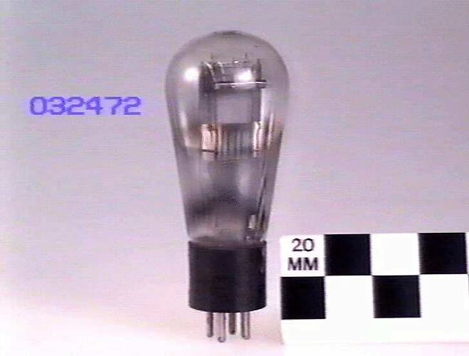 7.5 volt directly heated cathode, manufactured by RCA, Harrison, NJ, USA. Power output triode, introduced in 1925 to drive the then-new moving-coil loudspeakers.