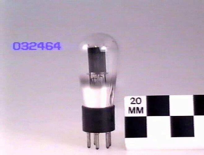 General purpose triode used in AC mains powered radios and other equipment (eg AF amplifier) in the 1930s. 2.5 V indirectly heated cathode, manufactured by RCA, Harrison, NJ, USA.