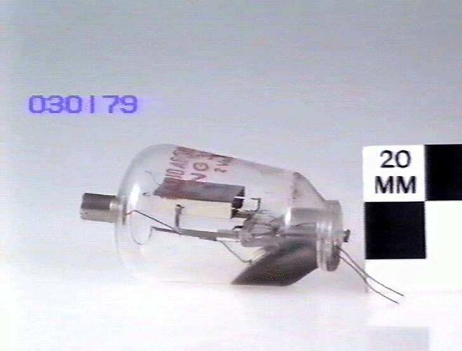 Replace with: High voltage high vacuum half wave rectifier, used in an oscilloscope manufactured by Loewe Radio in 1939. 2 volt directly heated cathode.
