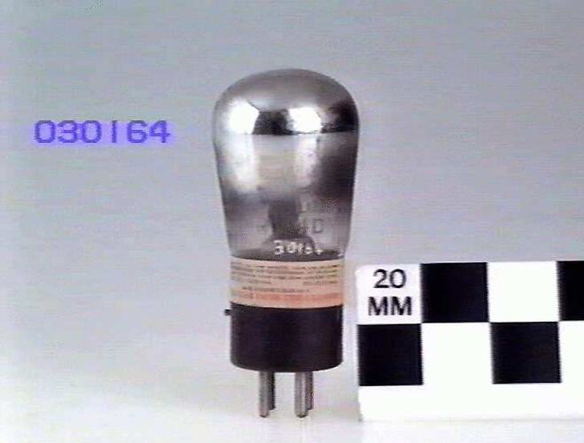 PM4DX type triode. Triode designed for use as a sensitive detector in radio receivers but also suitable for use as a low frequency amplifier. 4.0 volt directly heated cathode at 100 ma, mutual conductance 2000, amplification factor 15. Manufactured by Mullard Wireless Service Co., England, circa 1927.