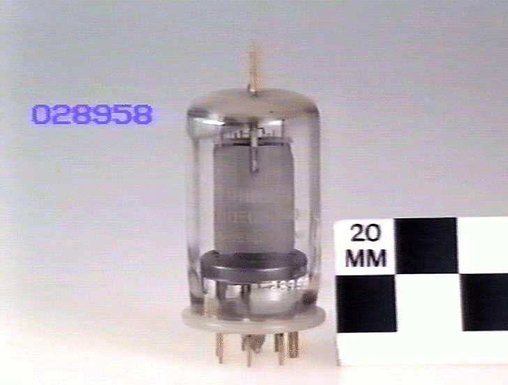 Dual tetrode for VHF radio transmitters, manufactured by Philips, Holland. Introduced 1955, in use until late1970s. This tube was very popular for use in VHF transmitters used in two-way radio base stations and by amateurs.