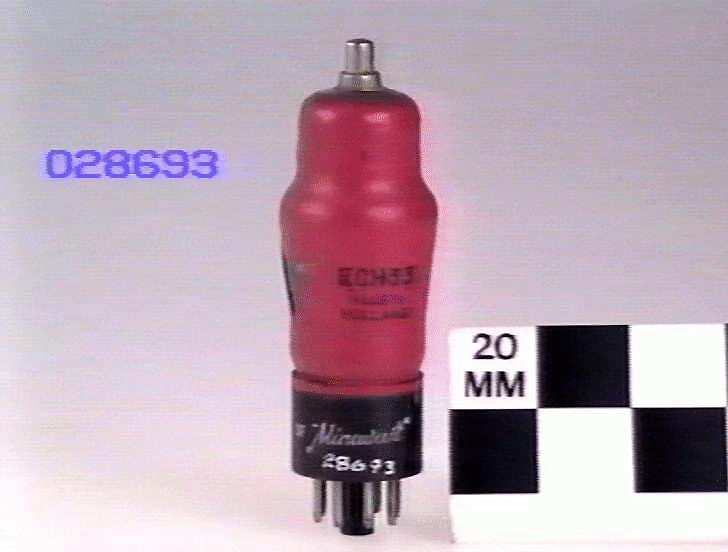 Triode-hexode used as a frequency changer in superheterodyne radio receivers. Used in the post-war years up to about 1952.