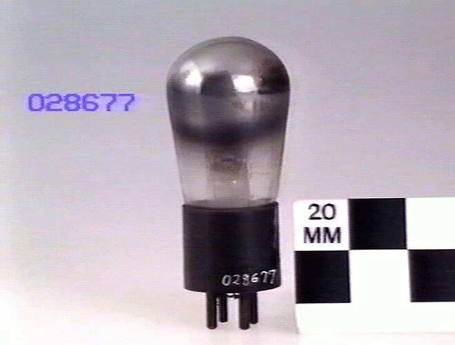 Triode, used as a detector and amplifier (general purpose audio amplifying valve with amplification factor of 15). Manufacturer: Marconi Osram Valve Company, England.
