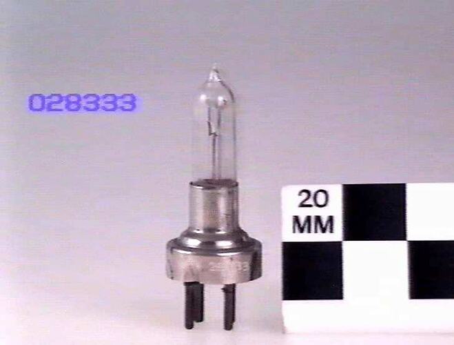 Cylindrical bulb, with evacuation tip, mounted on with 4 pin European style base.
