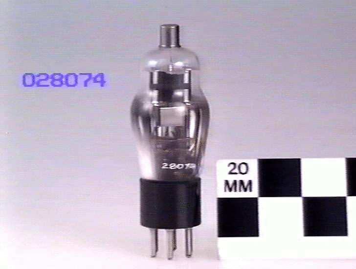 The first combined diode detector and audio amplifier to be produced. It was developed by RCA in 1931 but was not announced until the middle of 1932. The two diodes and the triode share a common cathode. One diode is usually used as the signal detector; the other is used to generate the automatic gain control (AGC) voltage. The triode section is used as the first audio amplifying stage. It has a 2.5 volt indirectly heated cathode.