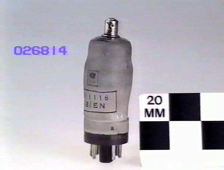 Pentode designed to allow control of its mutual conductance by varying its suppressor grid voltage. This allowed it to be used as a low level modulator or as a reactance valve. Also known as CV1116.