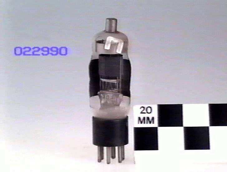 Remote cut-off pentode used as an RF and IF amplifier in radios. It had a 6.3 V indirectly heated cathode. Equivalent to the 2.5 V type 58 and the later octal type 6U7G.