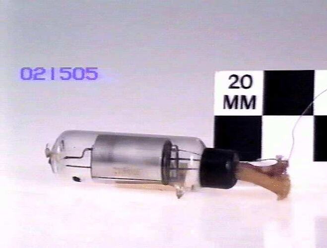 The ebonite caps at the ends of the valve are an improvement on the first model (ST 021713), actually only called EXPANSE. Otherwise same as the De Forest "Audion" (ST 15477). Same as ST 018562 and ST 018563.