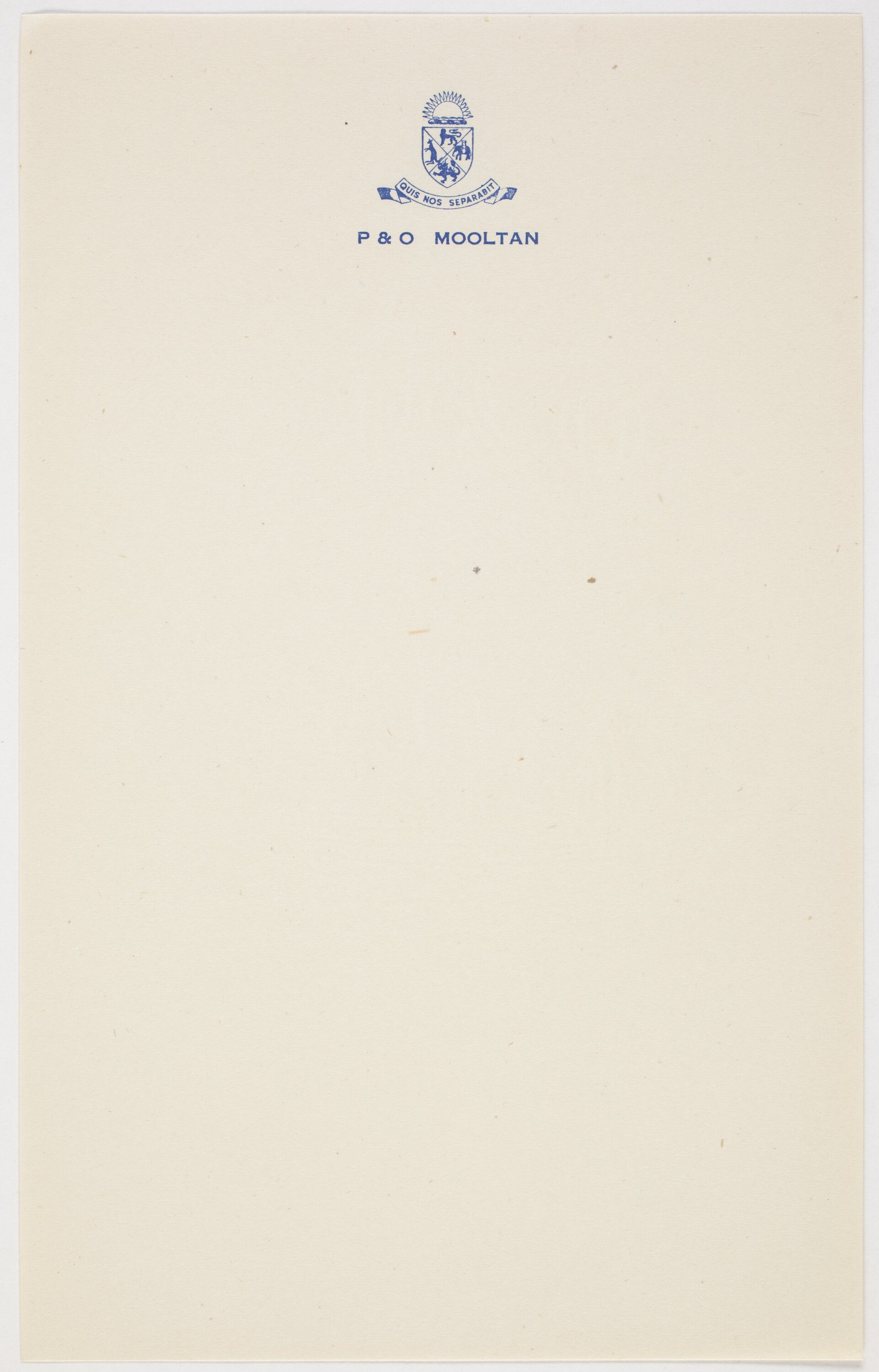 Text: QUIS NOS SEPARABIT/P&O MOOLTAN.