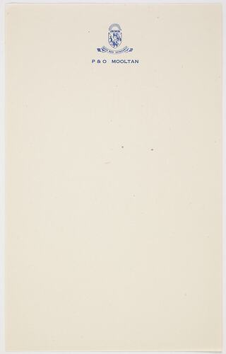 Thirty-six sheets of notepaper provided for passengers correspondence on board the SS Himalaya. It was collected by Margaret Wood during her own leisure travelling, not as part of her work for the Department of Immigration. It is part of a collection of shipboard souvenirs collected by Margaret Wood an officer in the Department of Immigration from 1951-1960.