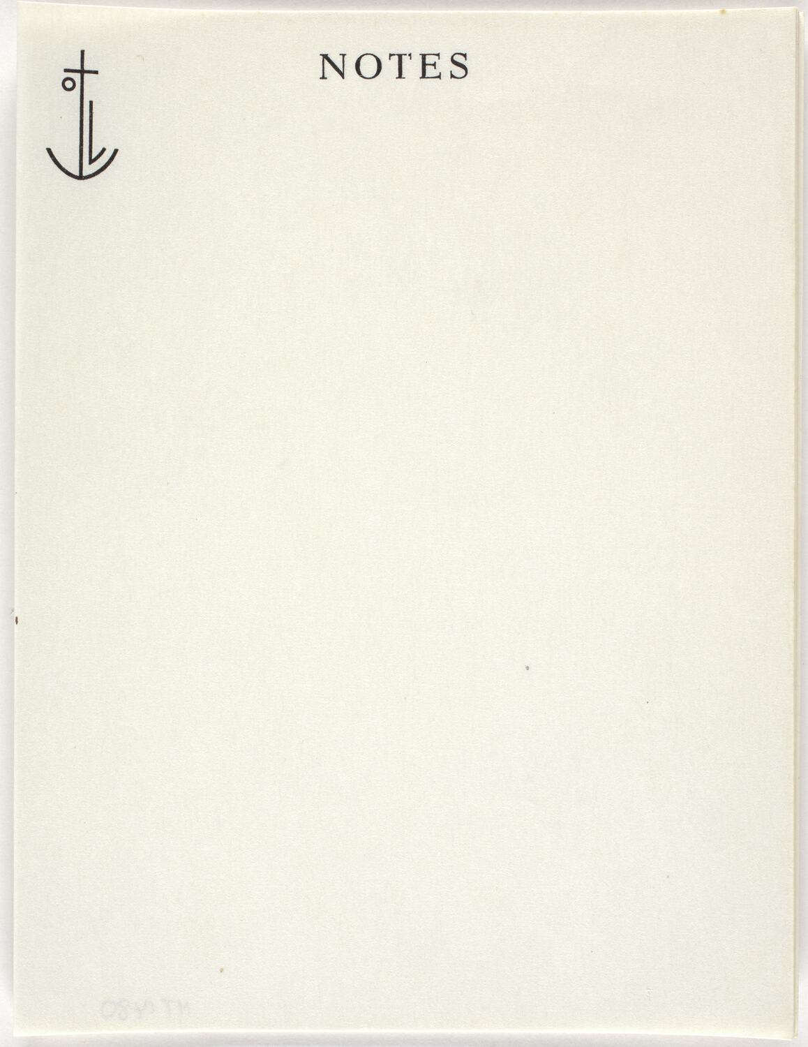 Twelve sheets of off-white note paper inscribed with black ink. There is an anchor logo in the top left corner in black ink.