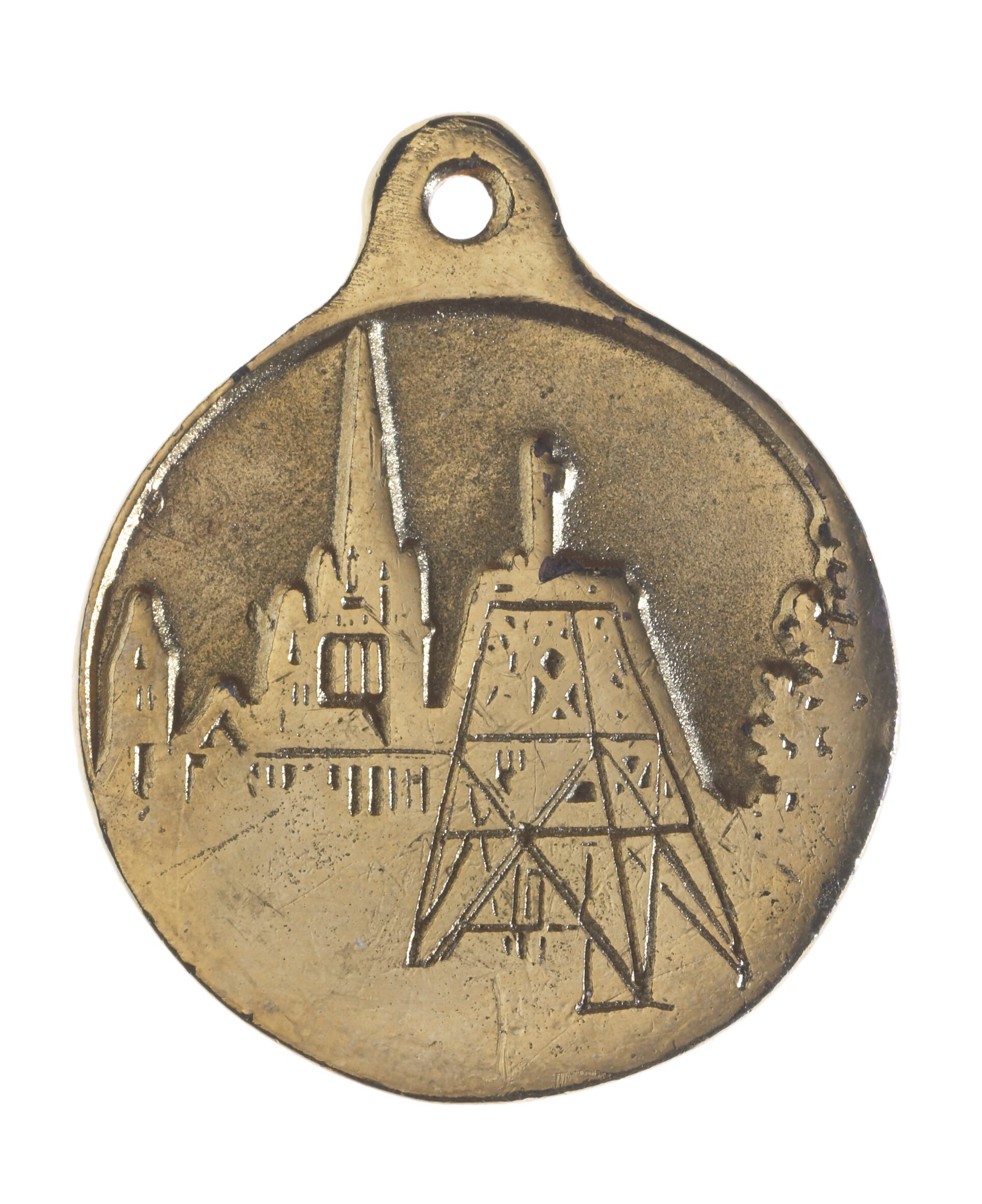 An unissued bronze medal (57 mm. diameter) depicting imported animals and plants.