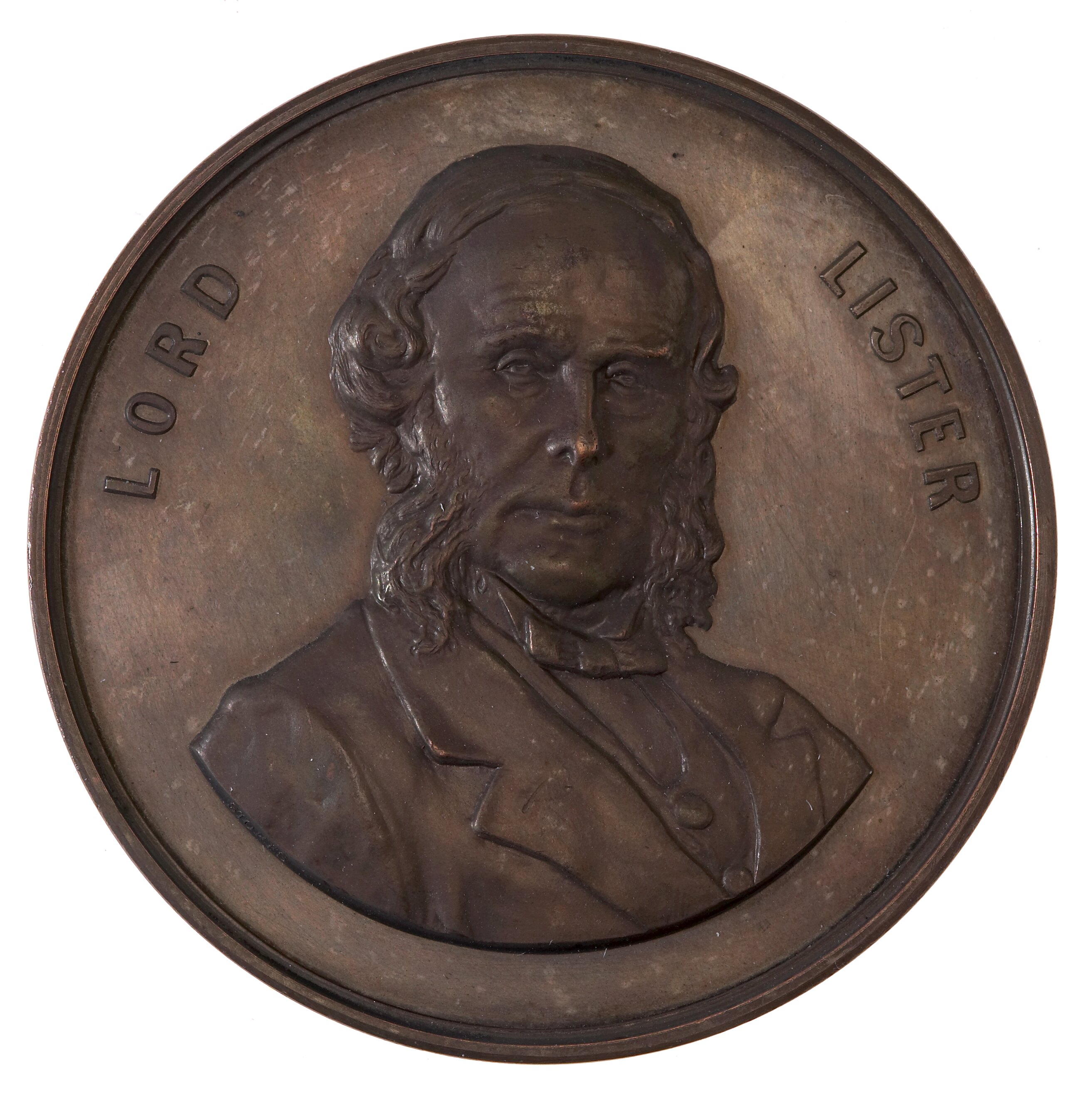 An unissued specimen bronze prize medal (54 mm diameter) featuring a facing bust of Lord Lister.
