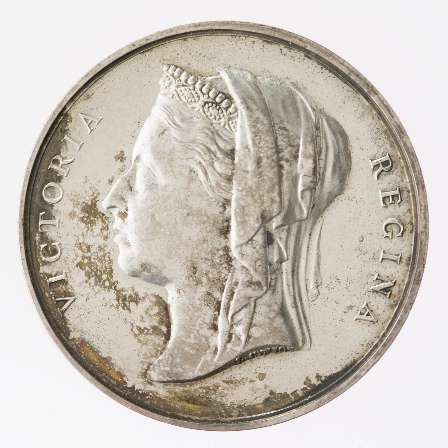 Obverse; 'VICTORIA REGINA / L.C. WYON' (artist's name).