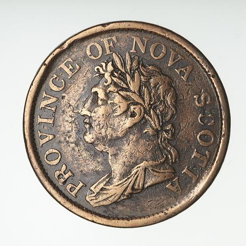 Laureate and draped bust of King George IV facing left; around, PROVINCE OF NOVA SCOTIA