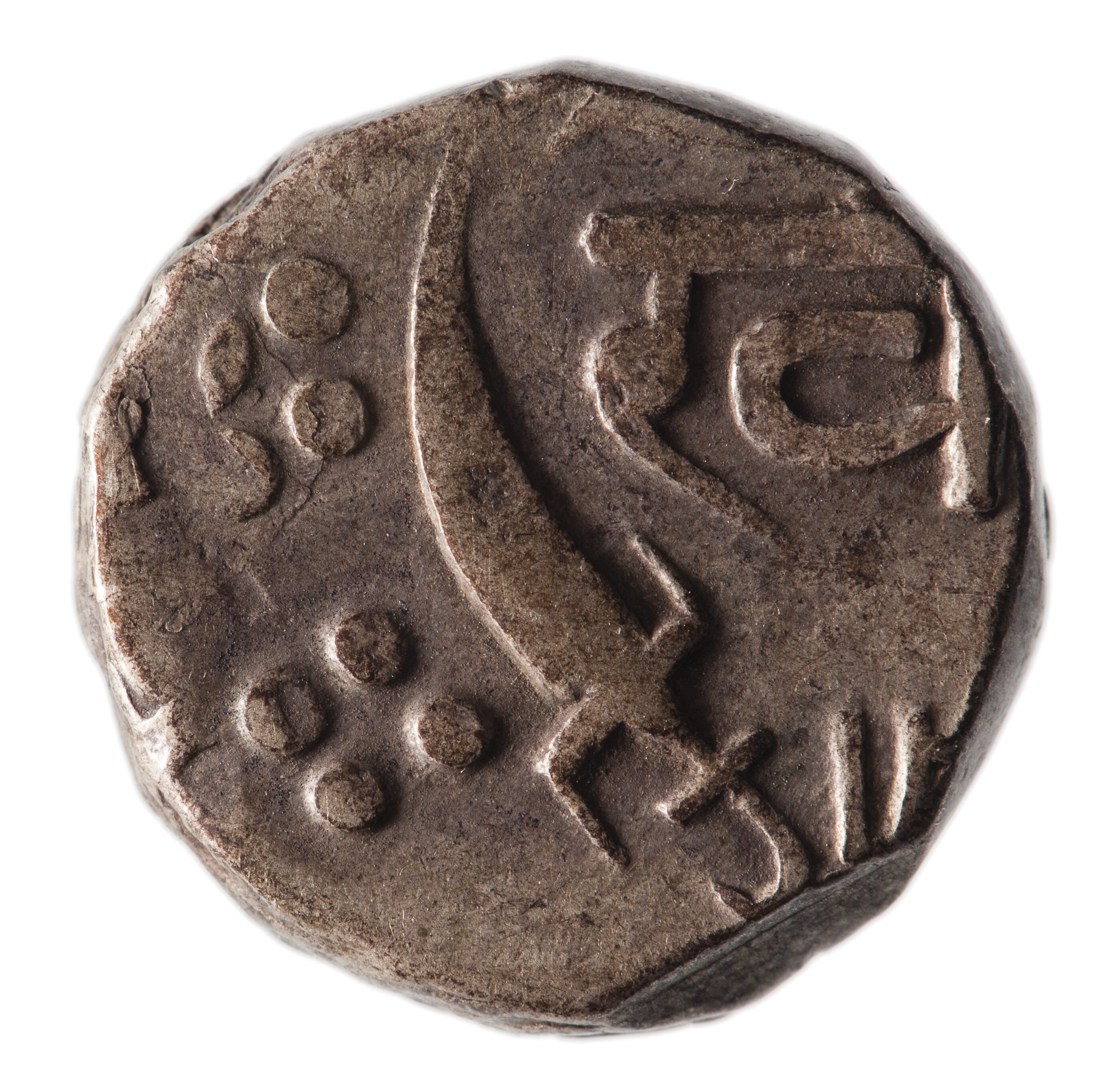 1/2 Rupee, Hammered Coinage, Issued by Khande Rao, Baroda Princely State, India, 1274-1286 AH (1857-1870)