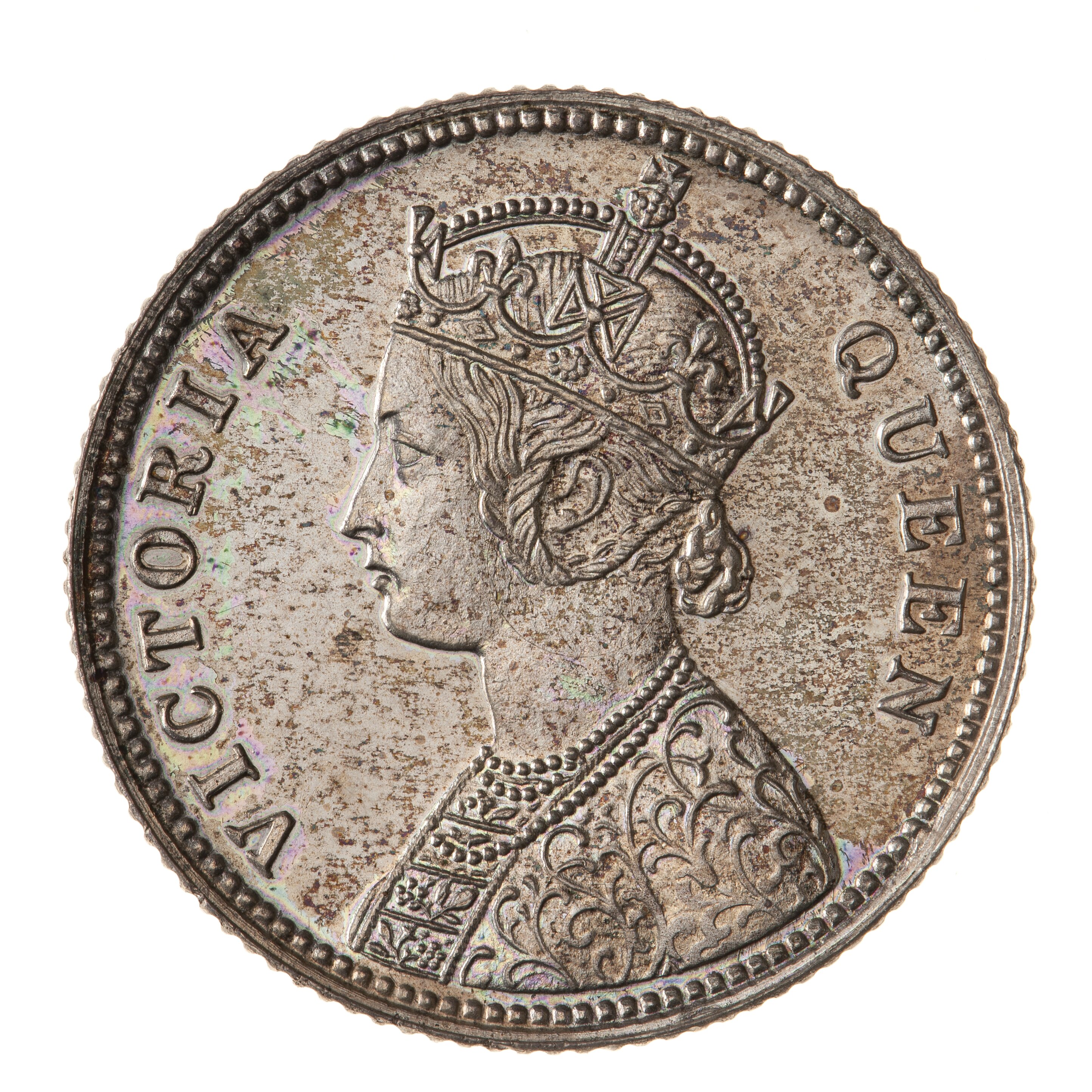 Within entwined scrollwork of Indian flora, 1/4 / RUPEE / INDIA / 1862