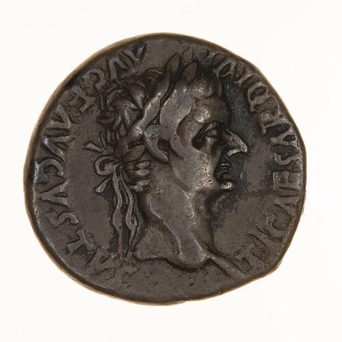 Laureate head of Tiberius facing right; around, TI CAESAR DIVI AVG F AVGVSTVS
