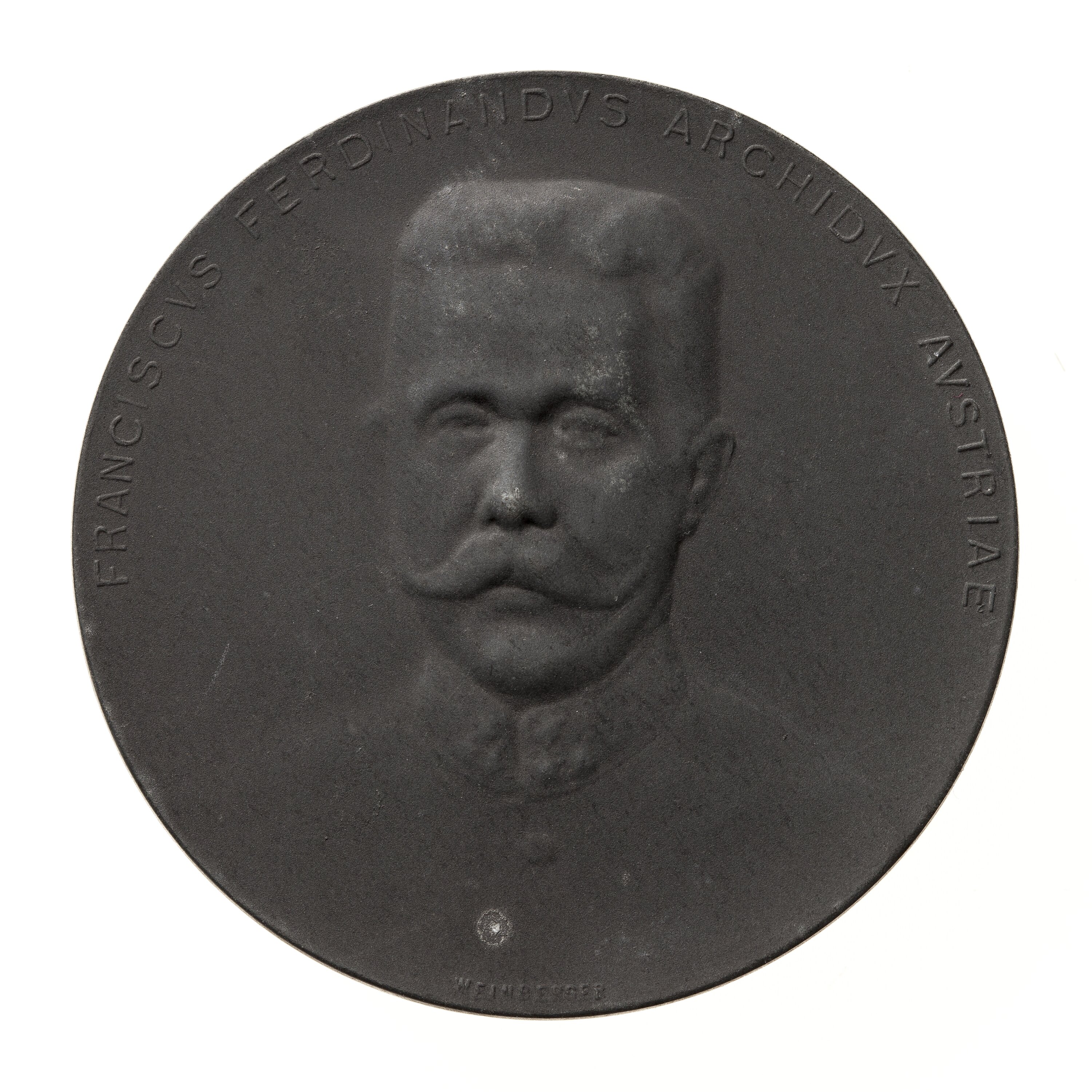 Obverse Inscription: "FRANCISCVS FERDINANDVS ARCHIDVX AVSTRIAE / WEINBERGER" Reverse Inscription: "AVSTRIA ERIT IN ORBE VLTIMA / SARAJEN DIE 28 VI MCMXIV / WEINBERGER / A.E.I."