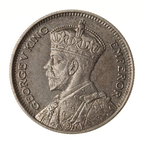 Crowned bust of George V facing left (extends to rim); around, GEORGE V KING EMPEROR (by Percy Metcalf)