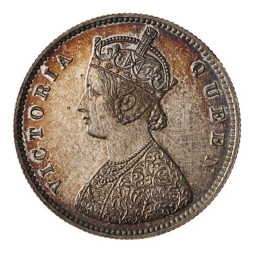 Crowned and robed bust of the queen facing left; around VICTORIA QUEEN (V at centre of bust truncation)