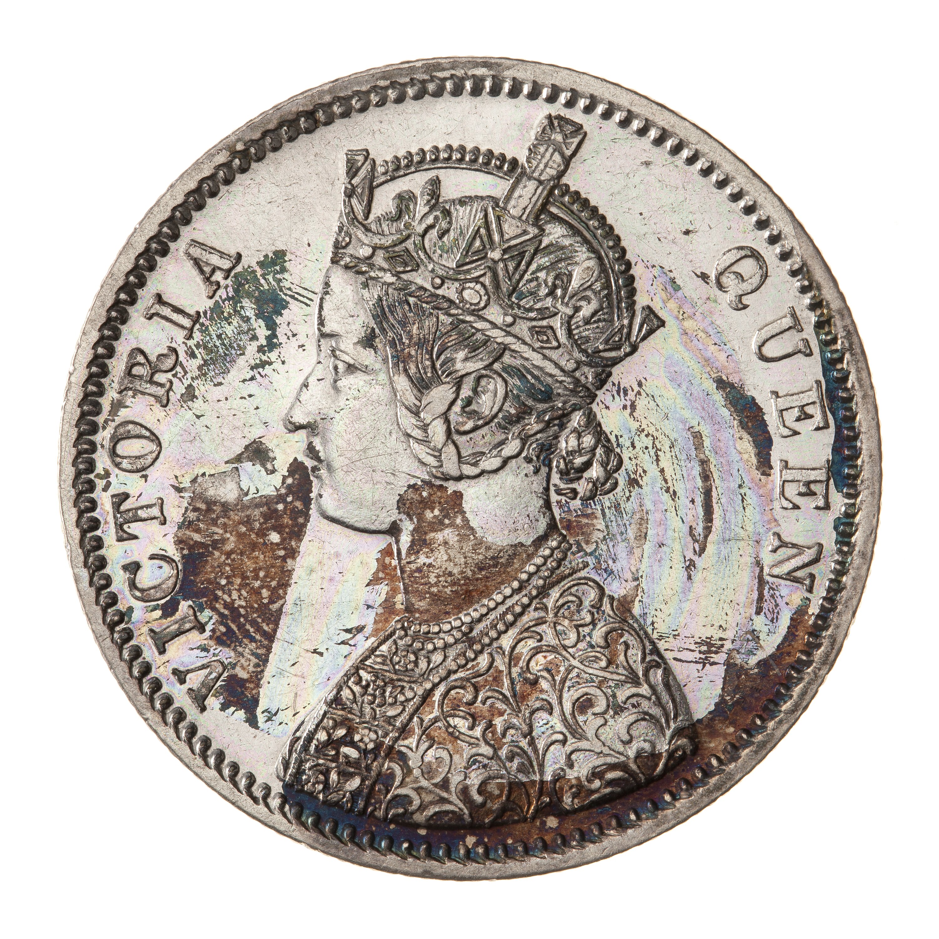 1 Rupee, Issued by India, 1862 (frozen date with 7 year dots on reverse)