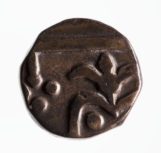 This coin design was struck unchanged during the reigns of the Maharajas of Mewar: