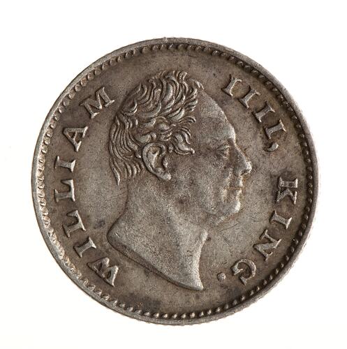 Bare head of the King facing right; around at sides, 'WILLIAM IIII, KING.'; 'F' raised on truncation.