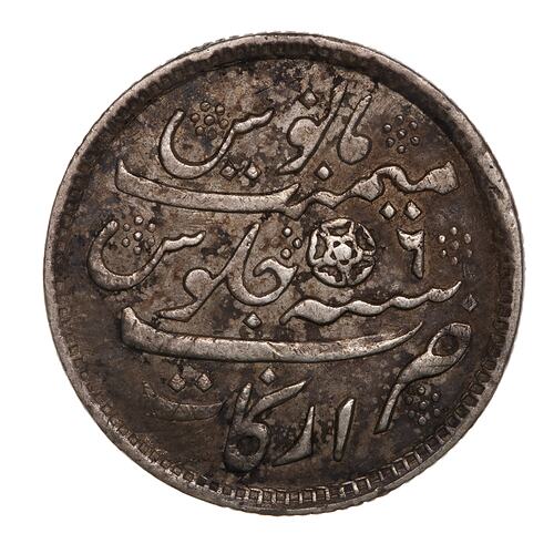 Legend in Persian script (translation: Struck at the Arcot Mint in the 7th year of his tranquil prosperity) with the rose mark Note: the legend and mint name are of a frozen type, they do not name the mint nor give the year of production.