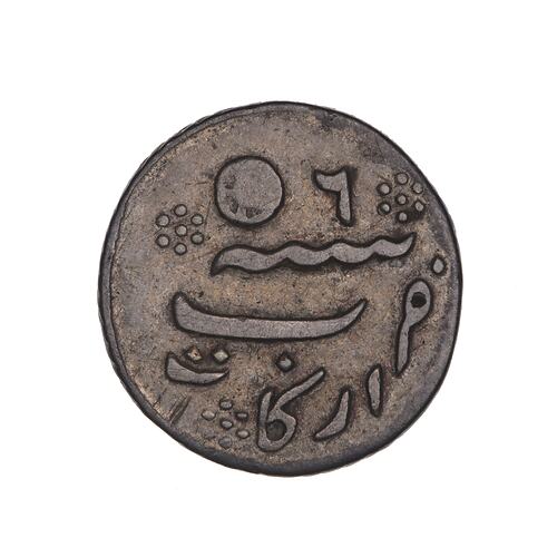 Legend in Persian script (translation: Struck at the Arcot Mint in the 6th year) with the rose mark Note: the legend and mint name are of a frozen type, they do not name the mint nor give the year of production.